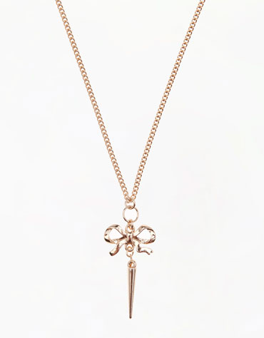 Numer jeden to złoty naszyjnik z wiązaniem i kolcem (24.90zł) oraz kolczyki z tego samego zestawu (19.90zł). Naszyjnik podobny do tego z Noble Collection (czyli filmowego :).